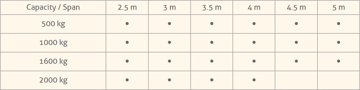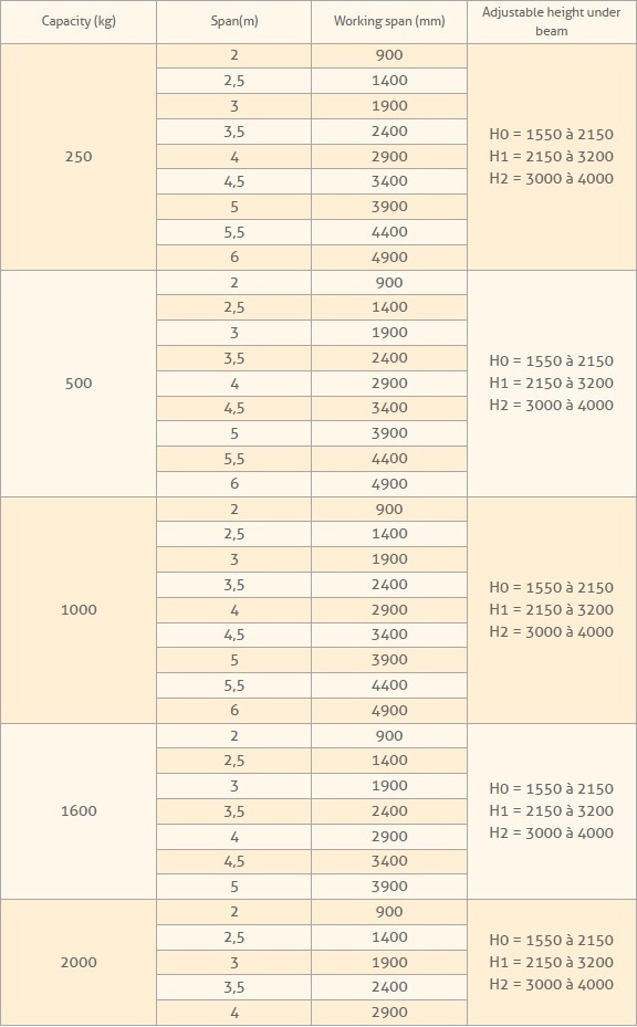 - System in aluminium: (Head in steel for model 2000 Kg and 3000 Kg).
