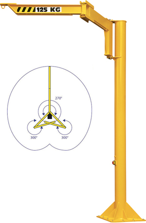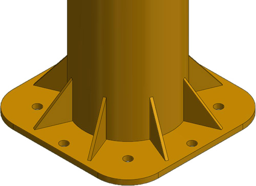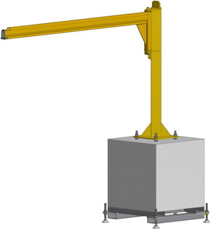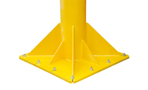 This type of attachment is to be used with the utmost care, when creating a concrete foundation would be impossible. This solution requires a slab of a sufficient depth and quality, which should be verified in accordance with the maximum moment indicated. In any case, we deny all liability regarding the strength of this type of attachment. These base plates cannot be removed from jib crane pillars.